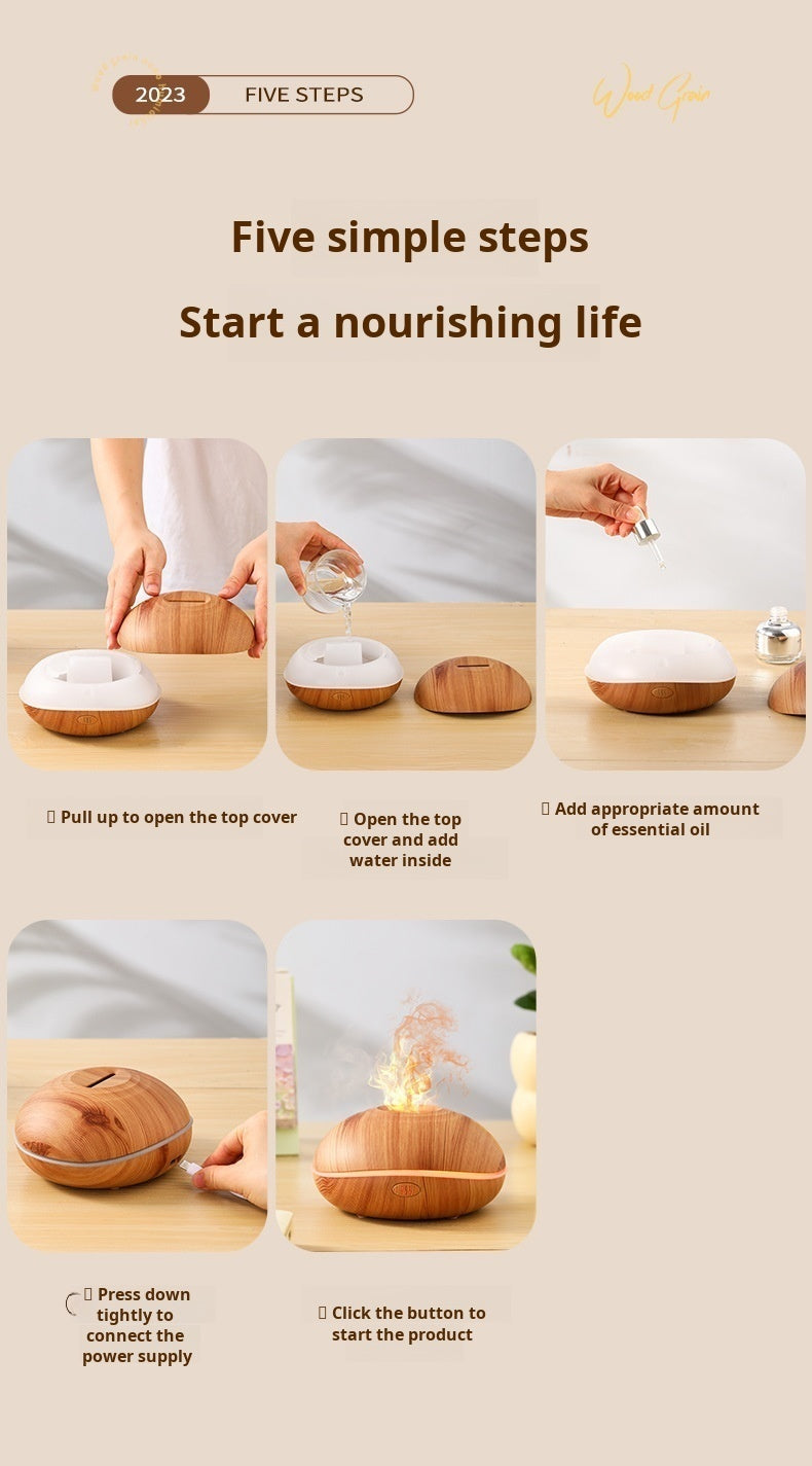 Flame-Effect Wood Grain Aromatherapy Diffuser – Stylish Humidification with a Natural Touch