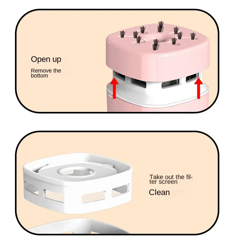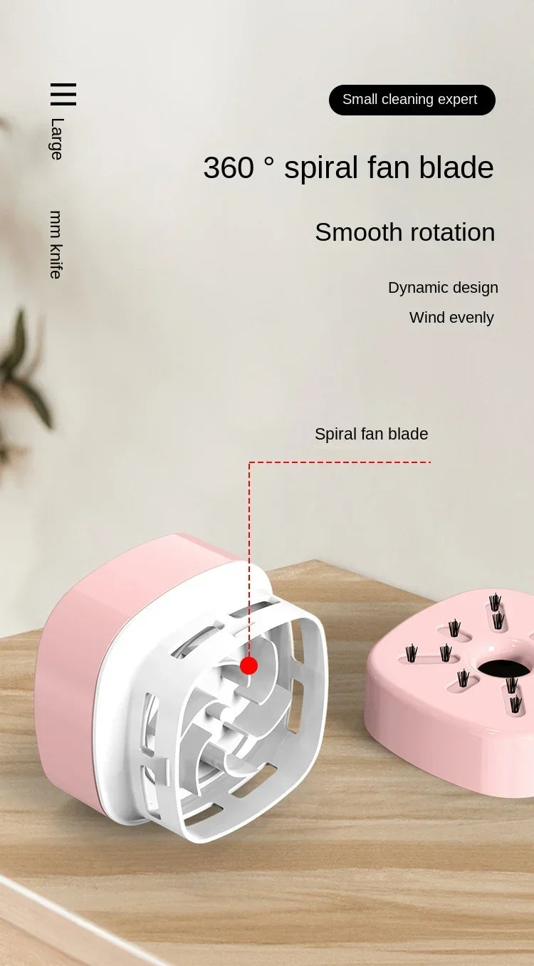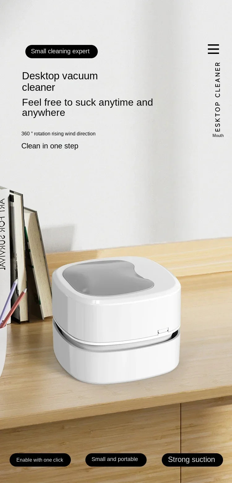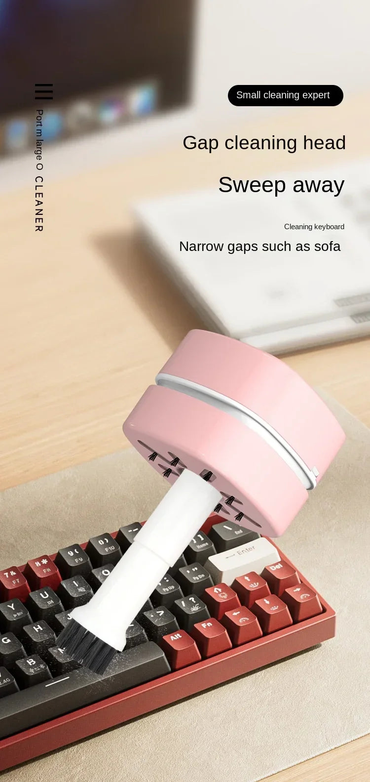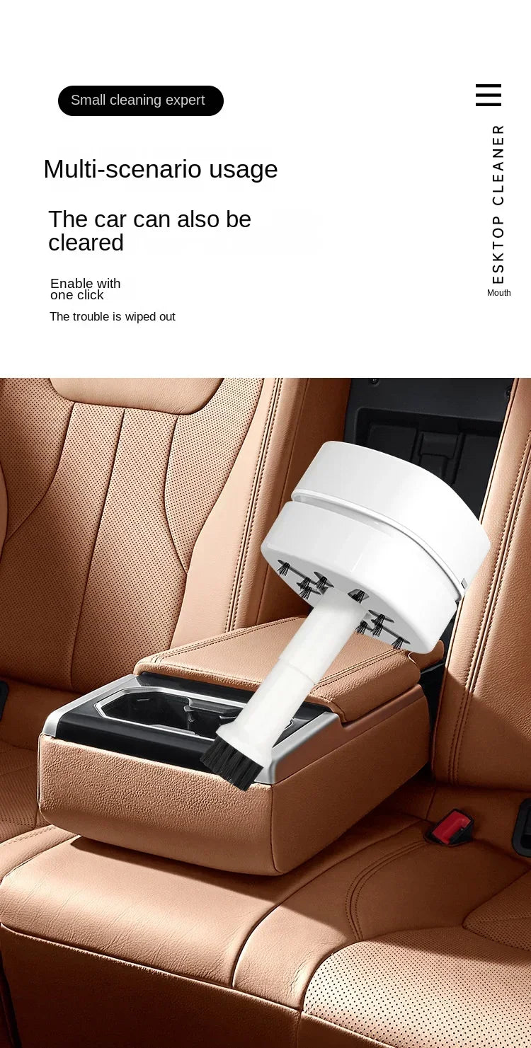 Cordless & Ultra-Portable – Lightweight and palm-sized (as small as 8 × 6 × 8 cm), perfect for cleaning desktops, drawers, laptops, and tight spaces.